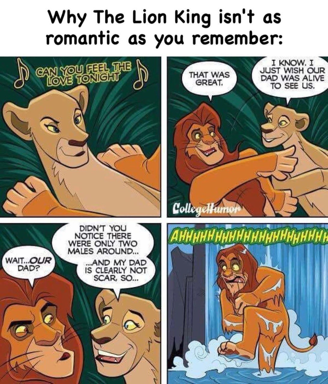 Well, that escalated quickly. From 'Can You Feel the Love Tonight' to 'Can You Feel the Crippling Realization Tonight'. 😳