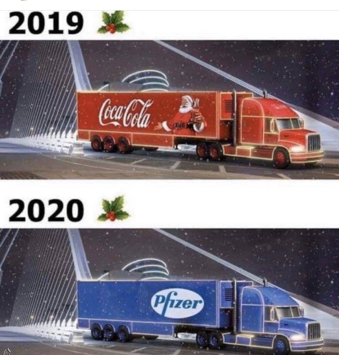 The only holiday truck we wanted to see pull up in 2020. Santa got a new sponsor that year. 💉
