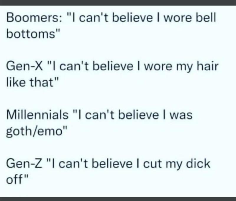 Explore the ultimate generational humor clash! Our meme gallery features the best Gen Z, Millennial, Boomer, and Gen X jokes. Discover funny, viral, and dank memes defining the comedy and differences between generations. Browse relatable internet humor and laugh at the hilarious Boomer vs. Zoomer comedy battle.