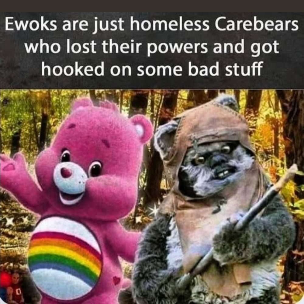 This fan theory about Ewoks being former Care Bears who've fallen on hard times just makes so much sense. You can't unsee it now.