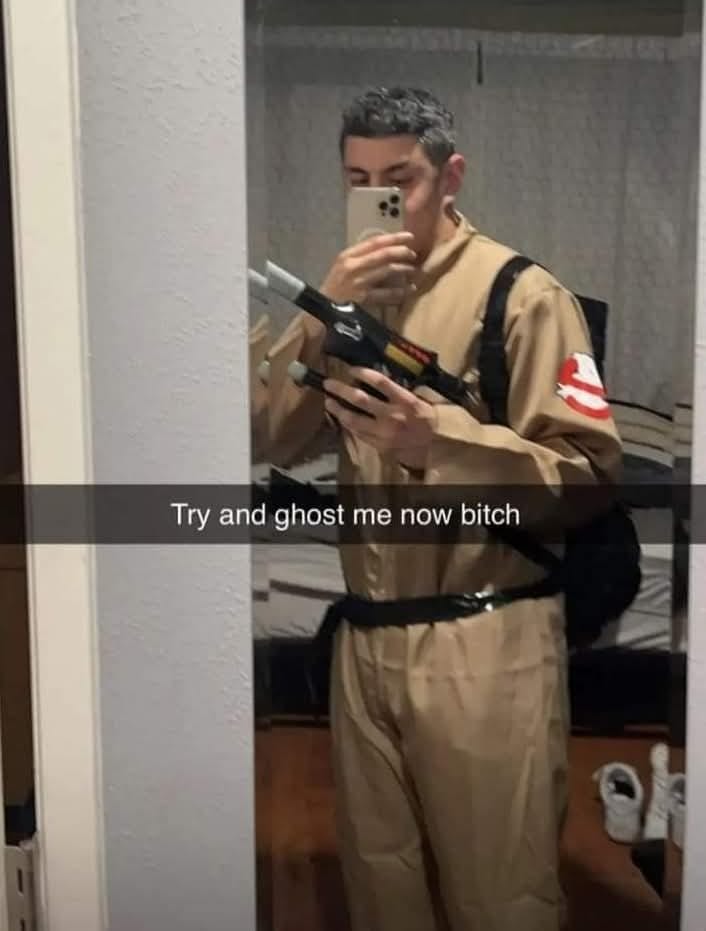 He's taking this whole 'ghosting' thing a little too seriously. You can't disappear on him now. 👻