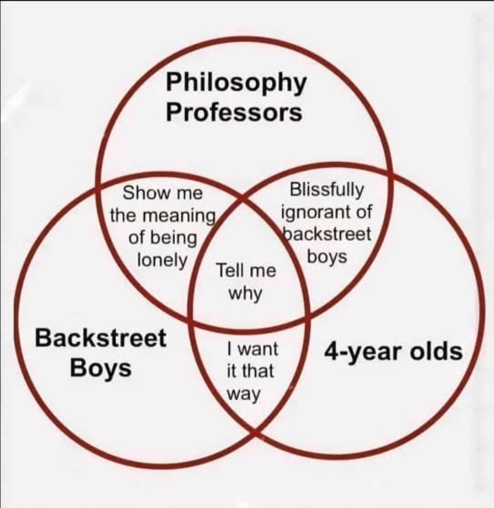The Venn diagram that proves philosophy, toddlers, and 90s pop have everything in common. Tell me why!
