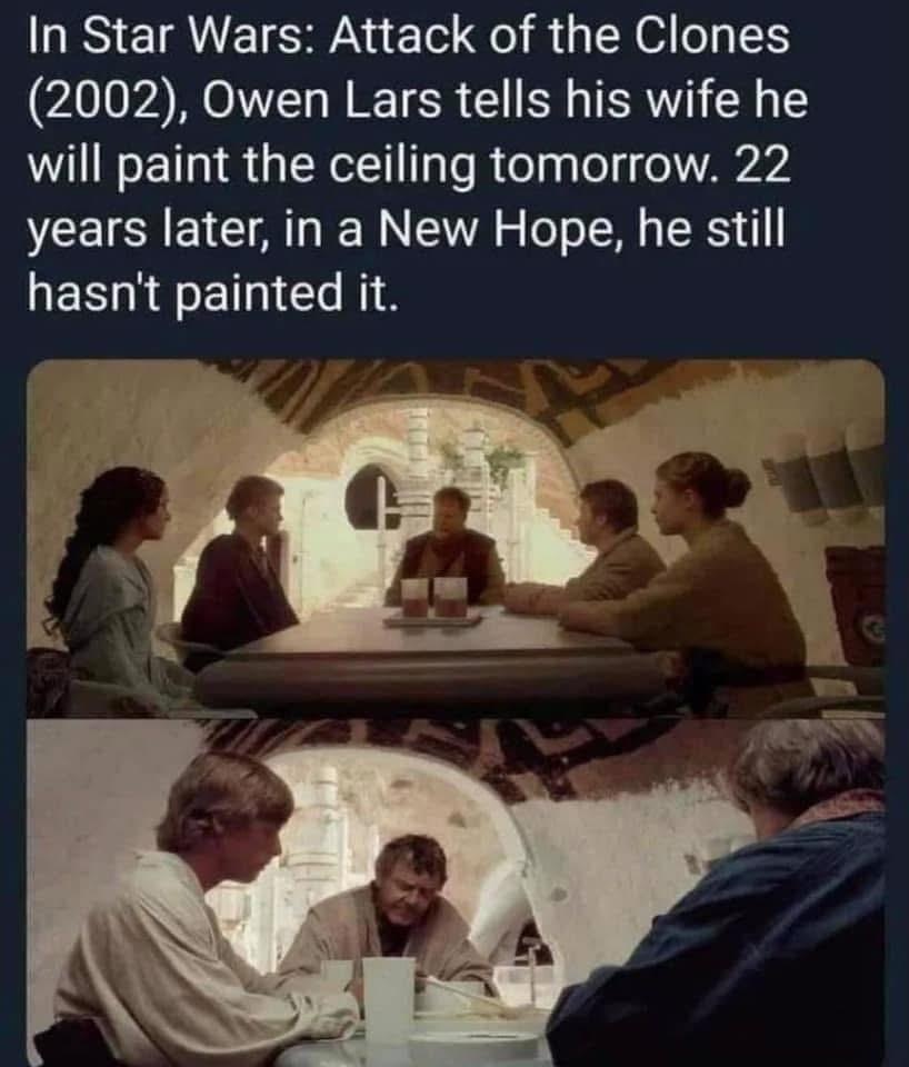 Even in a galaxy far, far away, some husbands just never get around to painting the ceiling. 🤷♂️