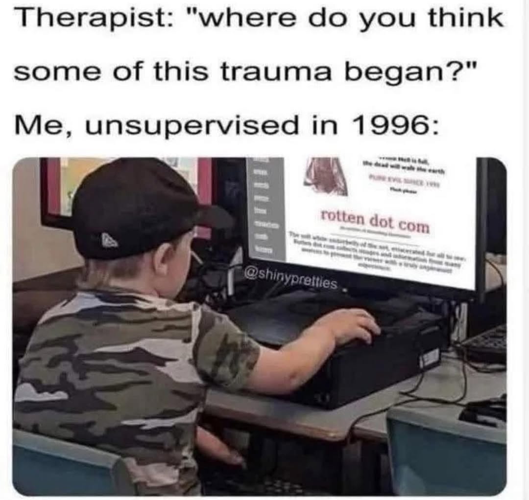 The wild west of the early internet, where every click was a gamble for your mental health. This is where the therapy bills started. đ
