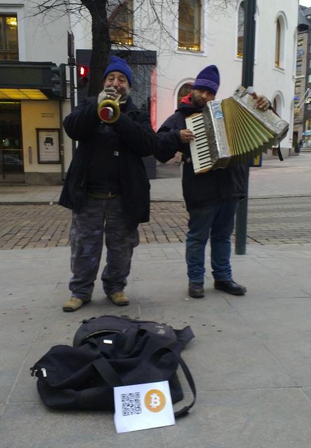 When you're a traditional street musician but also hodling to the moon. ๐